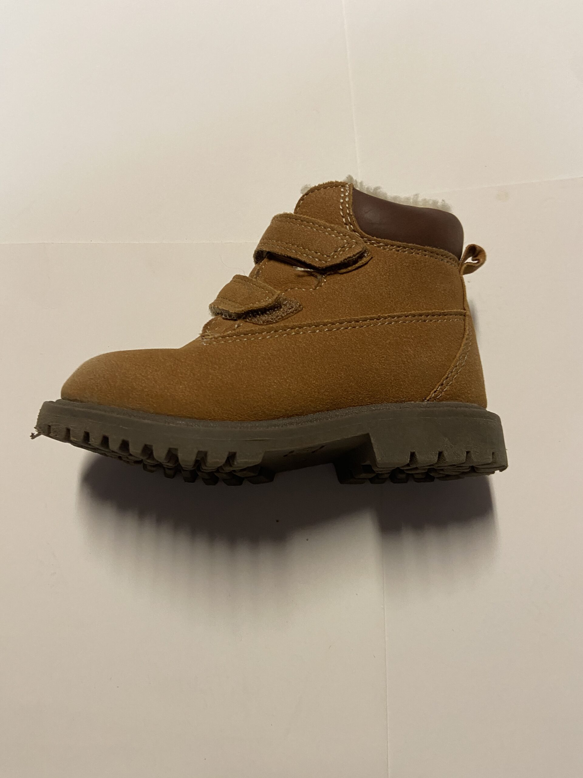 suede, Sherpa lined, Velcro enclosure, pull on tab