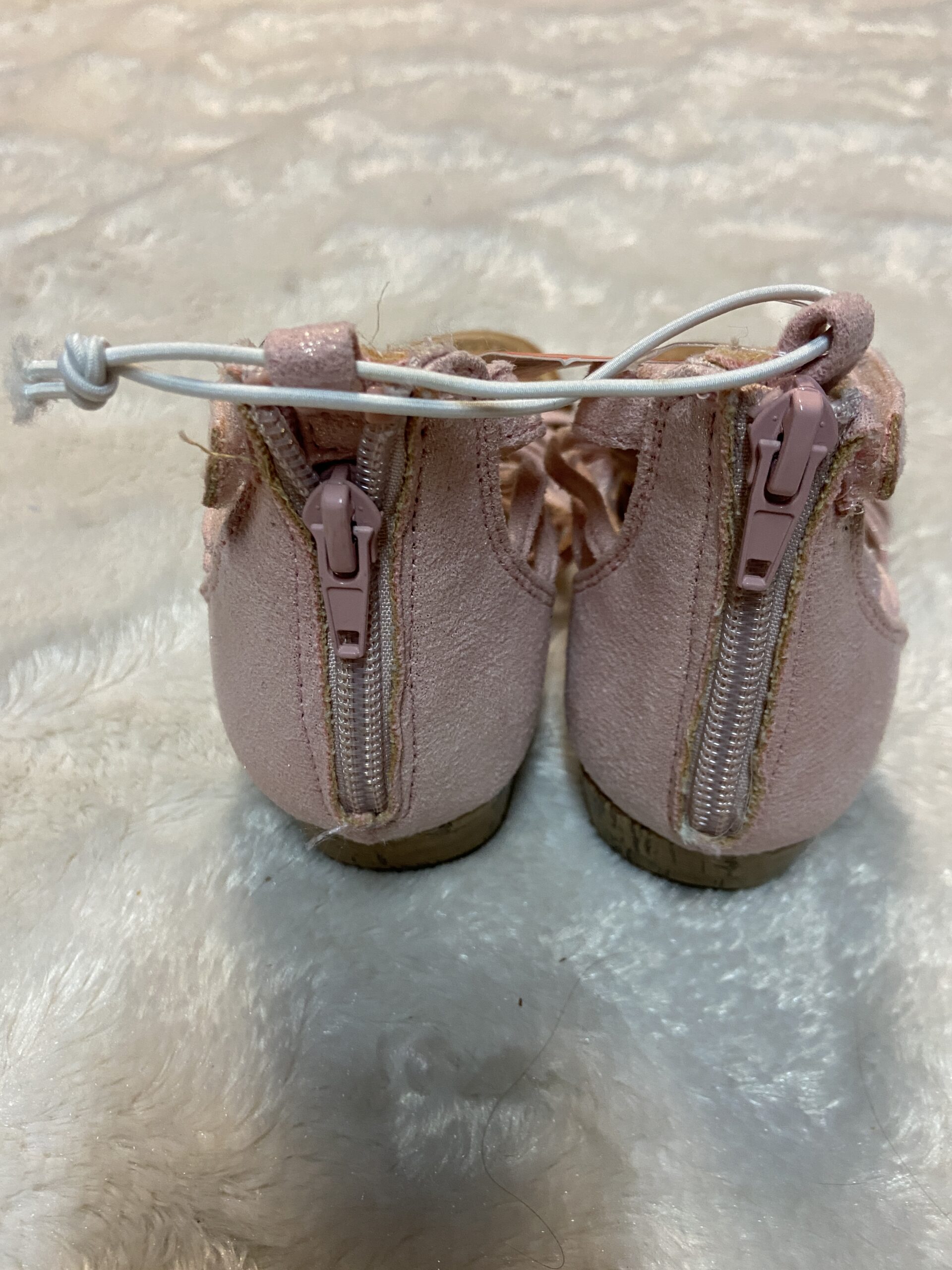 brand new, glittering, slight heel, zip up back, velcro enclosure